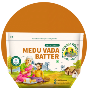 Gramin Fresh batters are made using traditional stone grinding methods and natural ingredients, ensuring authentic South Indian flavors. Our batters undergo a natural fermentation process to enhance texture and taste without any artificial additives or preservatives.