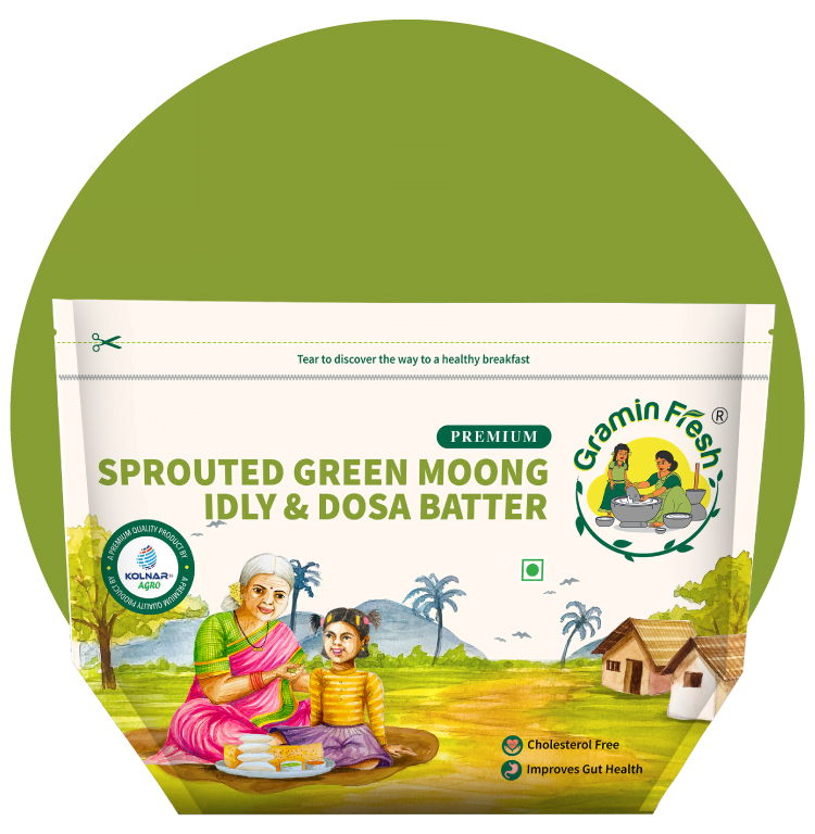 Start your day right with our sprouted green moong batter, a perfect choice for a nutritious breakfast. Whether you prefer idlis or dosas, our versatile batter offers a convenient and delicious way to incorporate essential nutrients into your morning routine.
