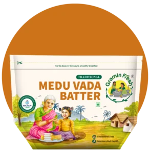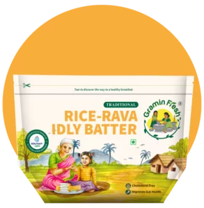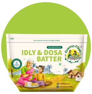 Gramin Fresh batters are made using traditional stone grinding methods and natural ingredients, ensuring authentic South Indian flavors. Our batters undergo a natural fermentation process to enhance texture and taste without any artificial additives or preservatives.
