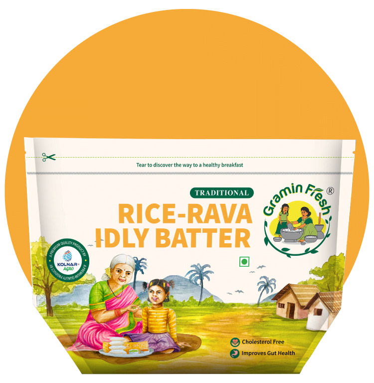 Gramin Fresh batters are made using traditional stone grinding methods and natural ingredients, ensuring authentic South Indian flavors. Our batters undergo a natural fermentation process to enhance texture and taste without any artificial additives or preservatives.